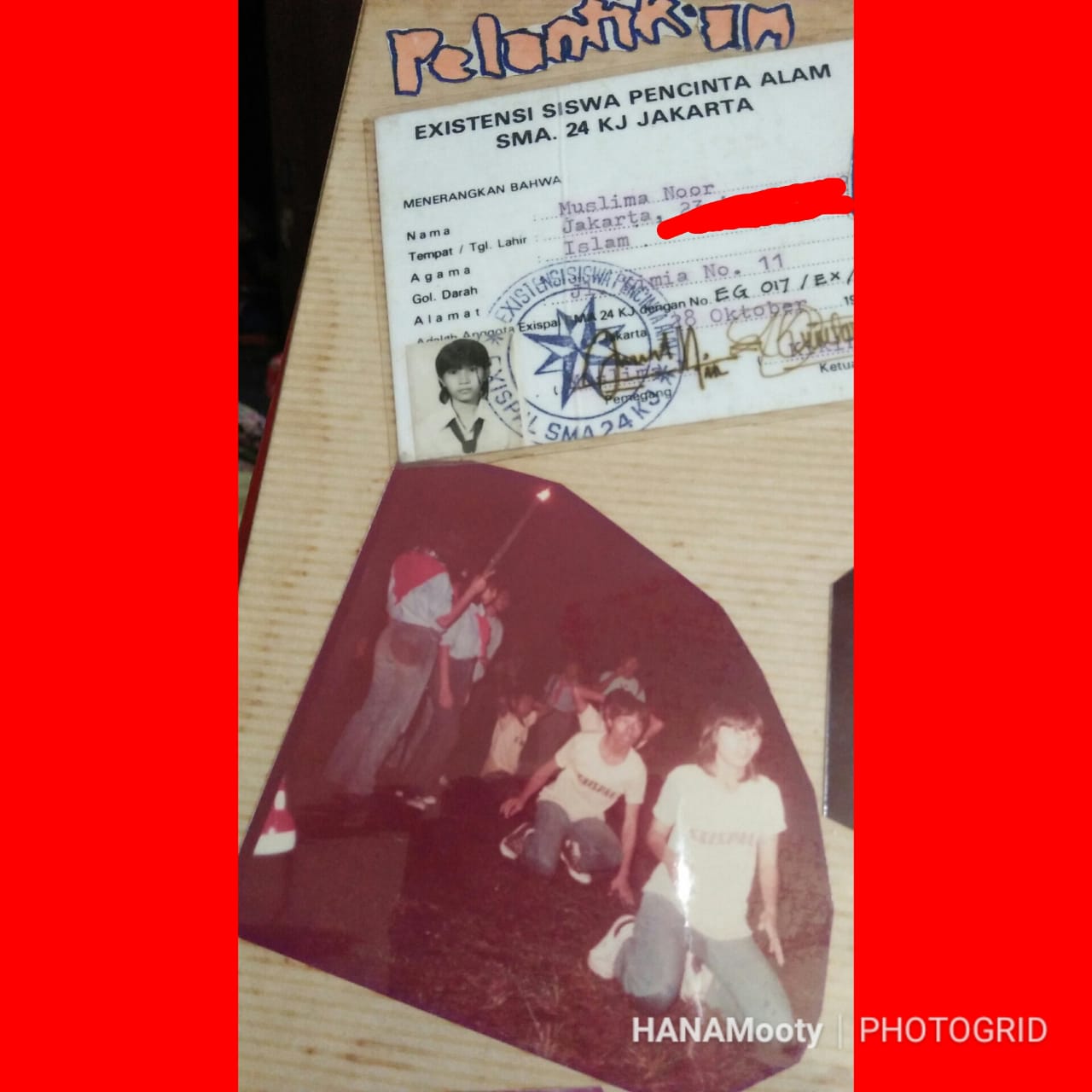 Lain lagi dengan pemilik KTA EG 017/EX/84 yang benama Muslima Noor. Dia harus pindah sekolah karena akibat pelantikan yang nyasar. Namun jiwa berpetualangnya masih terasa hingga hari ini. Menjelajah kota-kota di Indonesia hingga luar negeri bahkan di usia yang lebih dari setengah abad.